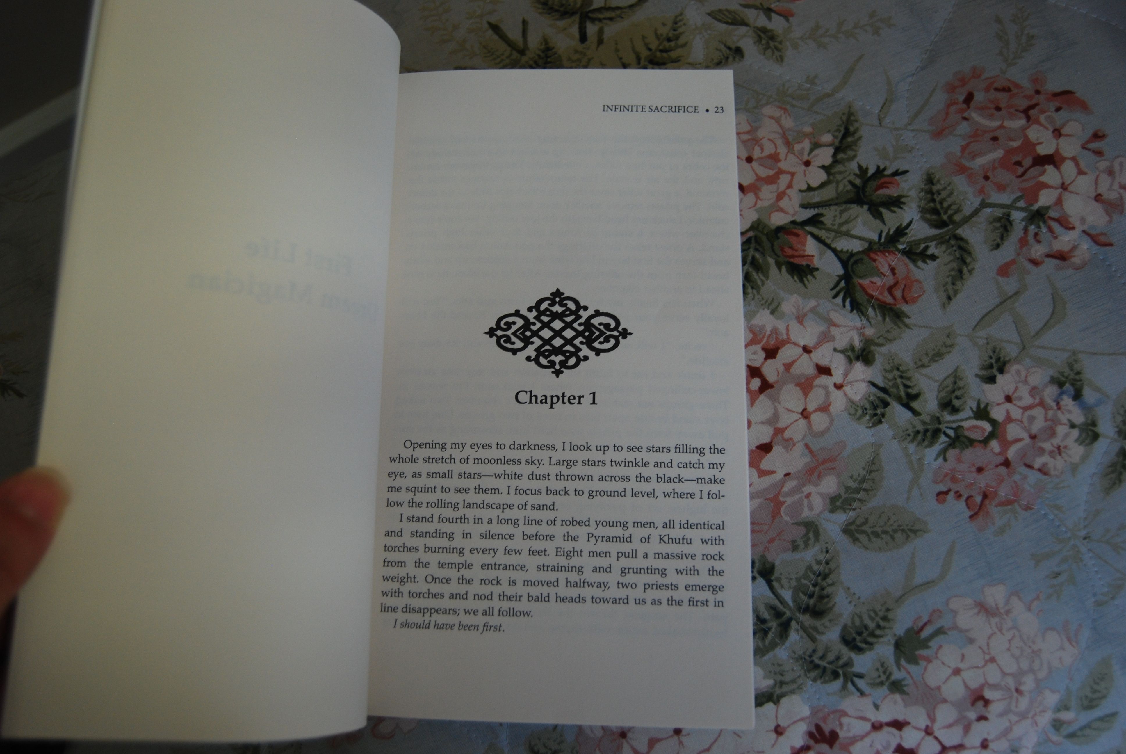 I leave to take my place in the dream-incubation chamber before Nebu sends her. I have to regain composure and steady myself for the important task ahead. I look up at my reflection in the brass incense burner, and I see her float in behind me. I turn, avoiding her eyes, and stare at my papyrus.